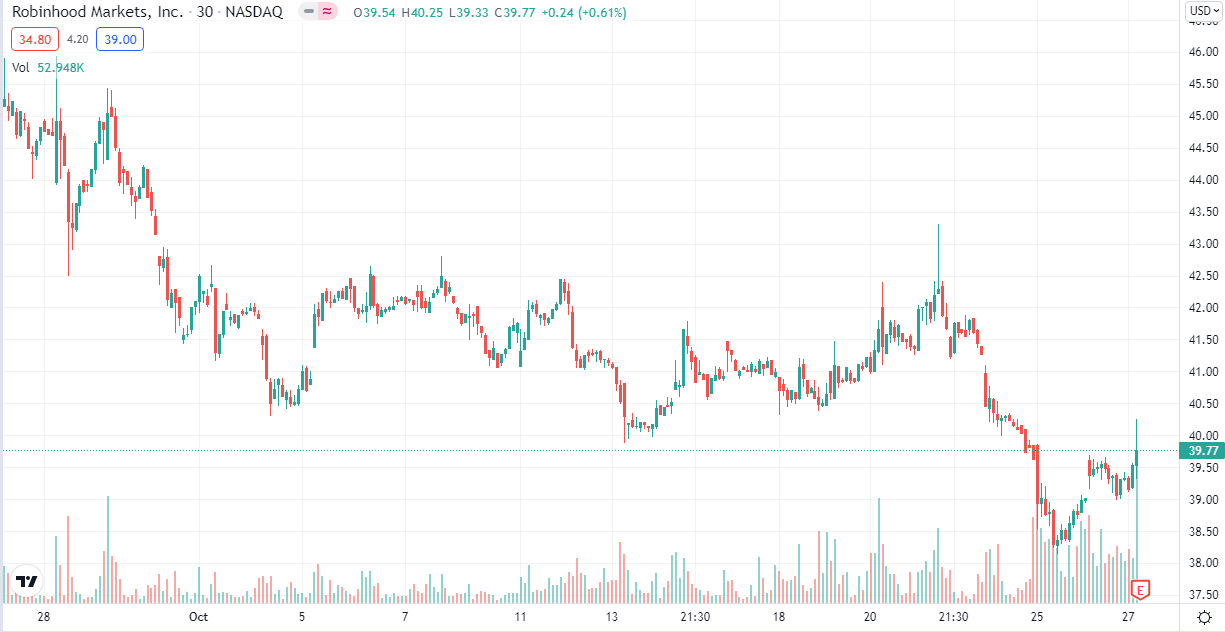 D’autre part, le chiffre d’affaires net total de Robinhood a augmenté de 35% pour atteindre 365 millions de dollars, contre 270 millions de dollars au troisième trimestre 2020. Son nombre mensuel d’utilisateurs actifs a augmenté de 76% pour atteindre 18,9 millions d’utilisateurs, contre 10,7 millions à la même période de l’année précédente. Enfin, le montant des actifs sous gestion s’est également accru de plus du double pour atteindre 95 milliards de dollars, contre 44 milliards de dollars au troisième trimestre 2020.