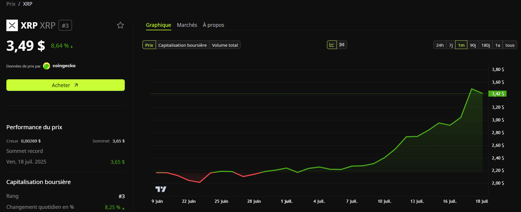 L’arnaque s’est propagée en ligne, surfant sur l’excitation engendrée par la hausse du cours de XRP à un nouveau sommet historique le soir de ce jeudi 17 juillet, alimenté par l’intérêt croissant des investisseurs et l’augmentation des nouvelles adresses.