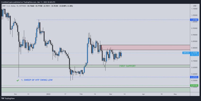 Depuis, cependant, le cours évolue à la hausse, et le XRP a dépassé cette zone le 7 février avant de la valider à nouveau en tant que support le 28 février.