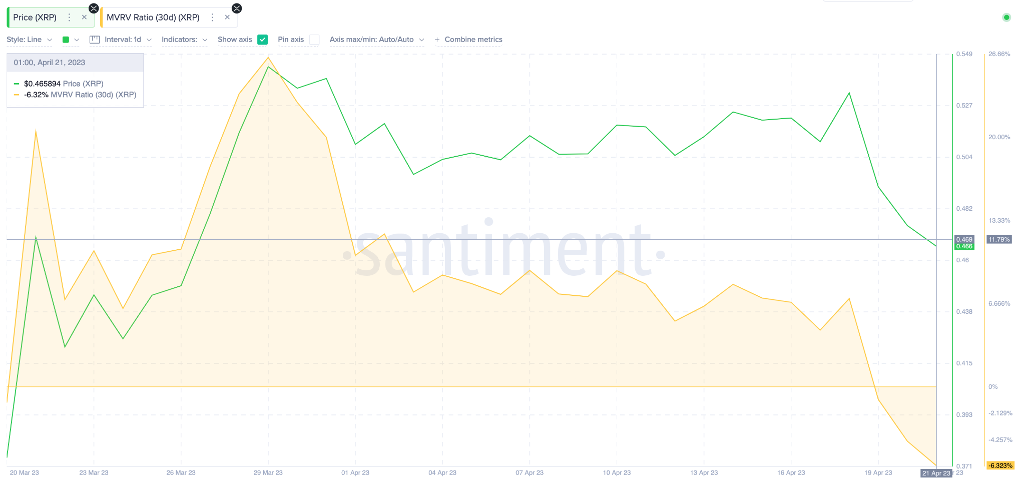 Au cours de la semaine dernière, les détenteurs haussiers de XRP ont défendu le support des 0,45 $. Selon les données de Santiment concernant l’indicateur de valeur de marché par rapport à la valeur réalisée (MVRV), un rebond du cours pourrait s’avérer imminent.