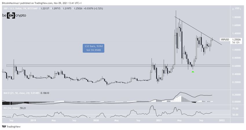 Le XRP évolue à la hausse depuis la semaine du 19 au 26 juillet, après avoir rebondi à sa zone de support horizontal située à 0,60 $. Le rebond a permis de valider cette zone en tant que support. Il s’agit d’un développement crucial, sachant que cette zone a précédemment agi en tant que résistance durant 924 jours.