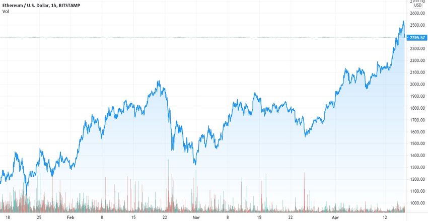 L’Ethereum a enregistré des performances phénoménales au cours des dernières semaines grâce à la finance décentralisée (DeFi), aux jetons non fongibles (NFT) et à la reprise générale du marché. L’actif a atteint un nouveau sommet historique de plus de 2 500 dollars le 15 avril.