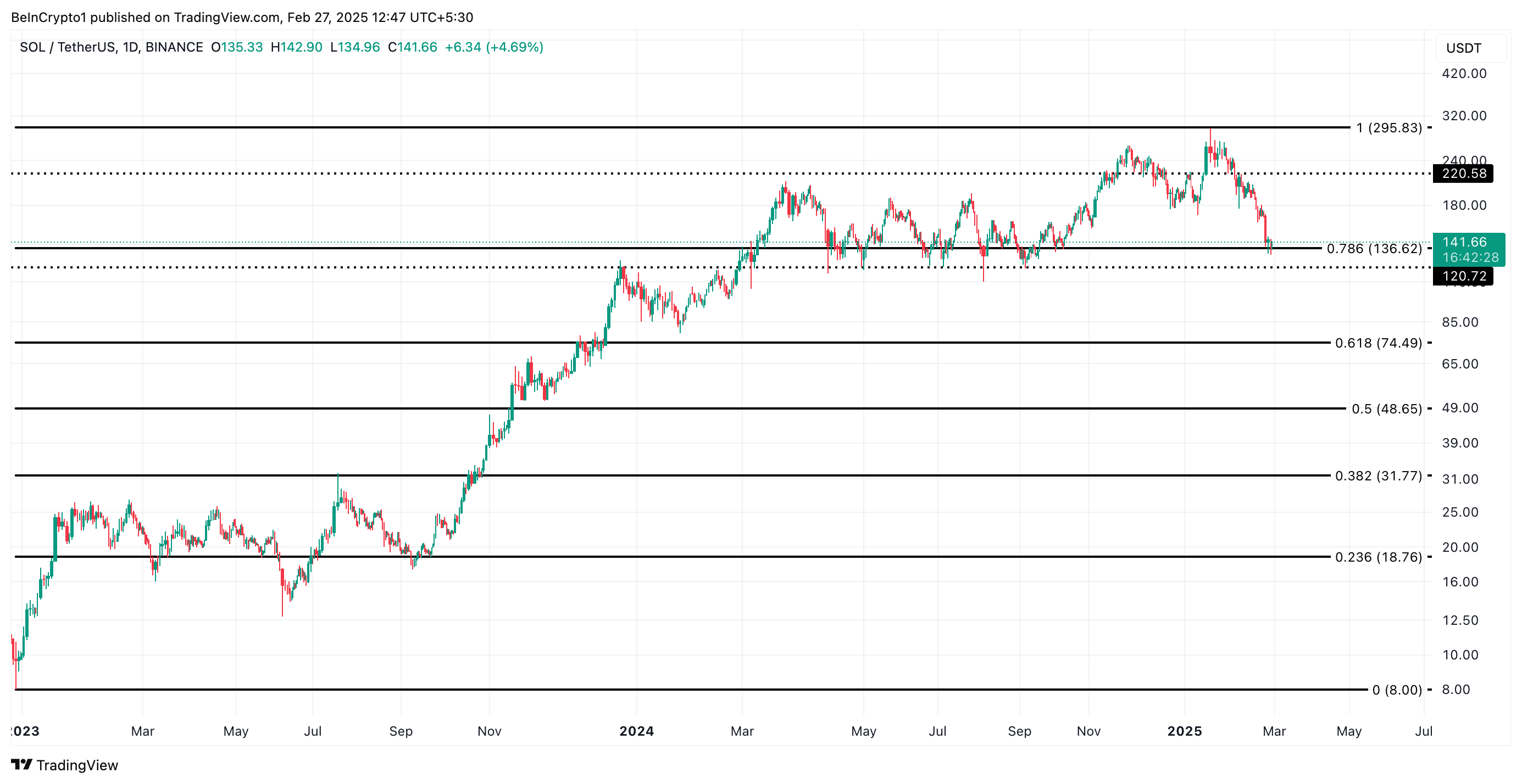 Le SOL se négocie à 141,67 $ au moment de la rédaction de cet article, situé légèrement au-dessus du niveau de support de 136,62 $. Si l’altcoin connaît une résurgence de la pression d’achat, ce niveau de support devrait se renforcer, propulsant le cours vers la barre des 182,31 $, où se trouve une résistance majeure.