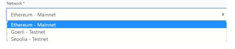Si l’utilisateur sélectionne Ethereum, il peut déployer son token soit sur le réseau principal, soit sur les testnets Goerli ou Sepolia.