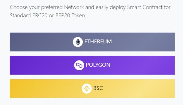 Token Generator est disponible sur Ethereum, Binance Smart Chain et Polygon. L’outil permet à ses utilisateurs de créer des tokens en utilisant la technologie des contrats intelligents.