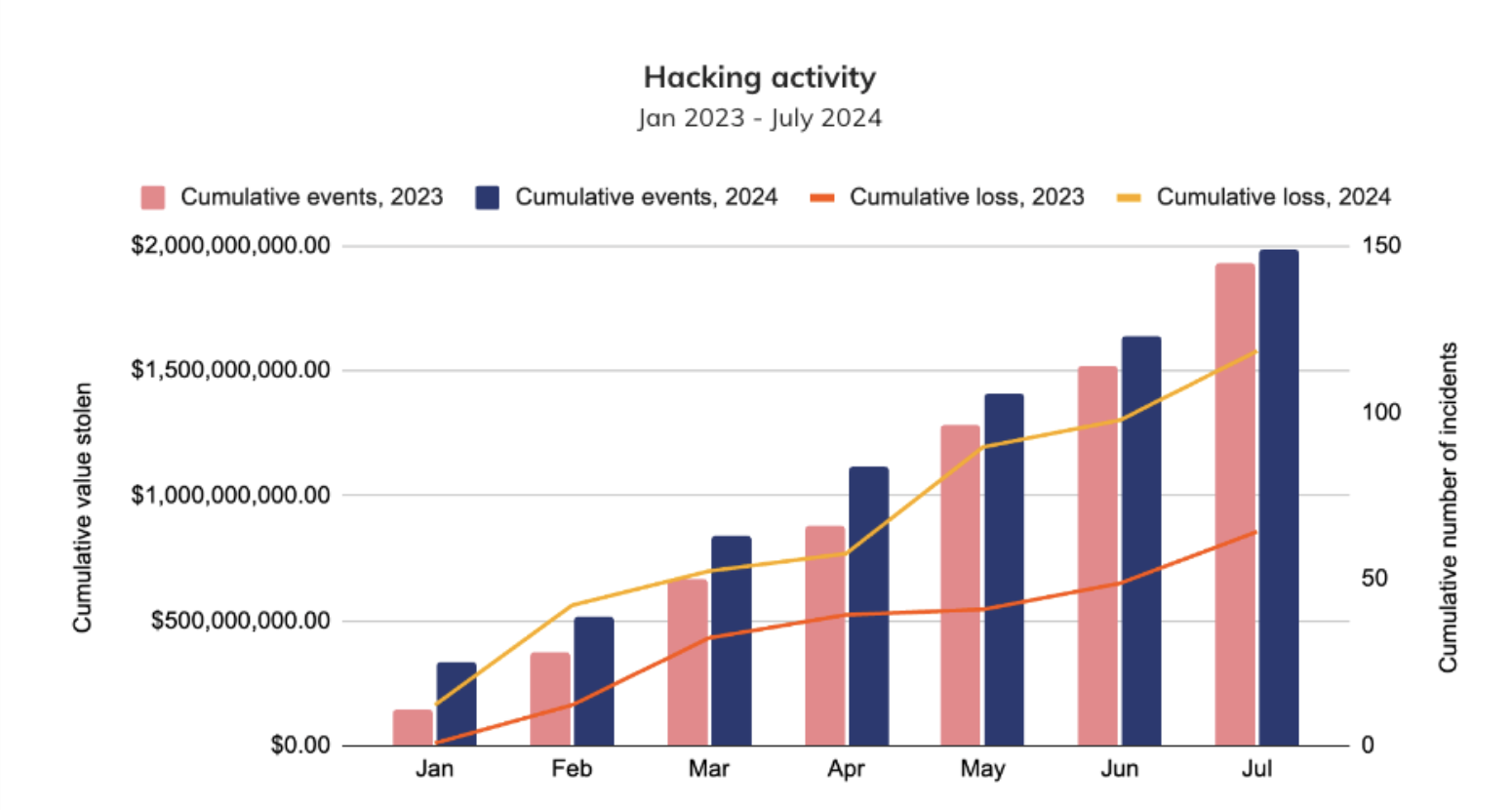 Le rapport mi-annuel 2024 de Chainalysis dévoile des données préoccupantes sur l’évolution des scams dans le secteur des cryptomonnaies. Bien que l’activité illicite globale ait baissé de 19,6 %, passant de 20,9 milliards de dollars au premier semestre 2023 à 16,7 milliards en 2024, certains types de crimes continuent de s’intensifier. Les fonds volés, en particulier, ont presque doublé, atteignant 1,58 milliard de dollars au premier semestre 2024. Cette augmentation résulte principalement des attaques ciblant les échanges centralisés, des cibles lucratives pour les scams malgré les efforts accrus en cybersécurité.