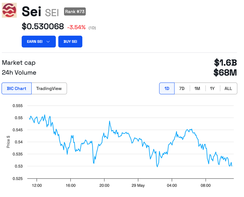 Malgré cette nouvelle, le cours du SEI est en baisse de 3,54 % par rapport à la veille. Plus largement, l’actif suit la tendance engagée par l’ensemble du marché des cryptomonnaies. Au moment de rédaction, le token se négocie à 0,530068 $, classé 75ème par capitalisation boursière.