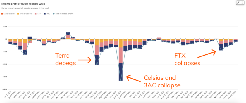 Bien qu’elle soit devenue l’affaire de fraude crypto la plus médiatisée à ce jour, l’effondrement de FTX a-t-il vraiment été le plus coûteux pour l’industrie ? En comparant les gains et les pertes réalisées sur une base hebdomadaire, Chainalysis a effectué une analyse pour déterminer quels événements ont coûté le plus cher aux cryptomonnaies cette année.