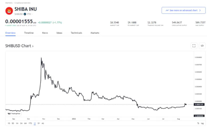 Au moment de rédiger cet article, la crypto-monnaie sur le thème des chiens Shiba Inu essaye de protéger ses gains. Le token, qui est passé de 0,000013 $ à 0,000018 $ se négocie désormais à 0,000016 $.