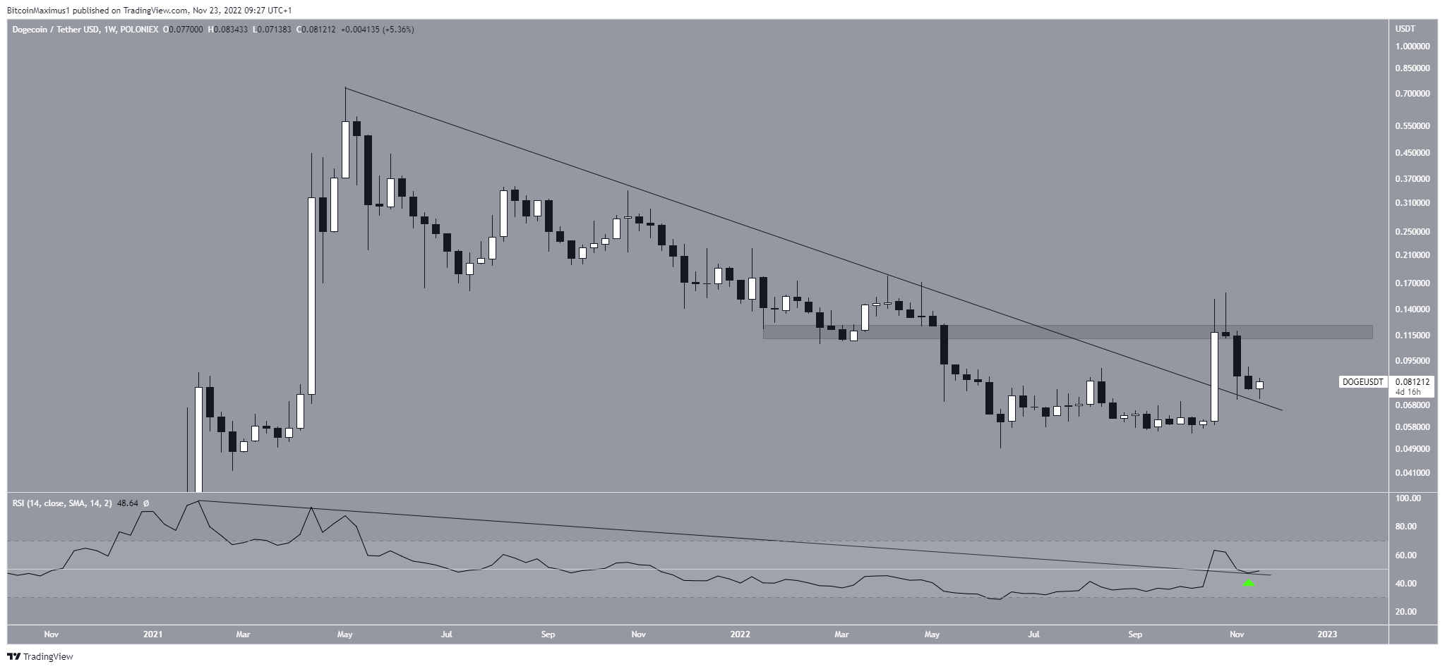 En ce qui concerne le mouvement à long terme, le graphique hebdomadaire présente également une perspective haussière. En effet, Dogecoin a dépassé une ligne de résistance descendante à long terme en place depuis son sommet historique.