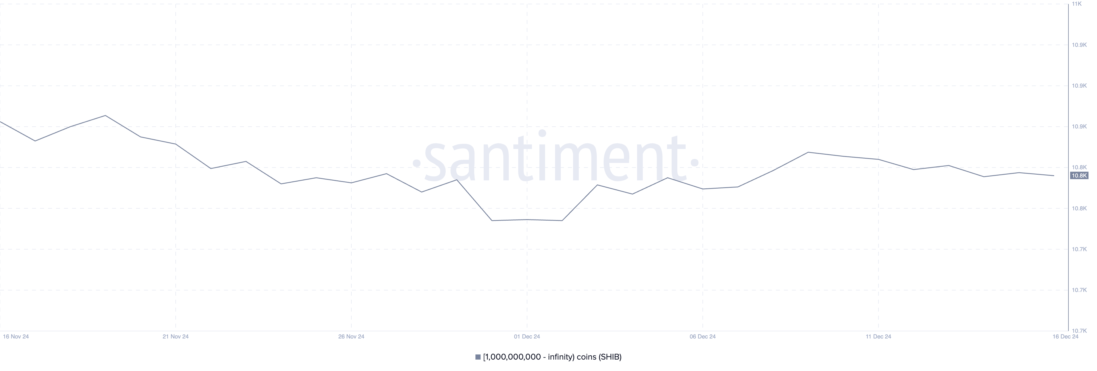 Le nombre de portefeuilles détenant au moins 1 milliard de SHIB a atteint un sommet mensuel de 10 921 le 19 novembre. Suivre ces grands détenteurs, communément appelés baleines, est souvent crucial puisque leur comportement d’achat et de vente peut influencer le sentiment du marché et les mouvements de cours.