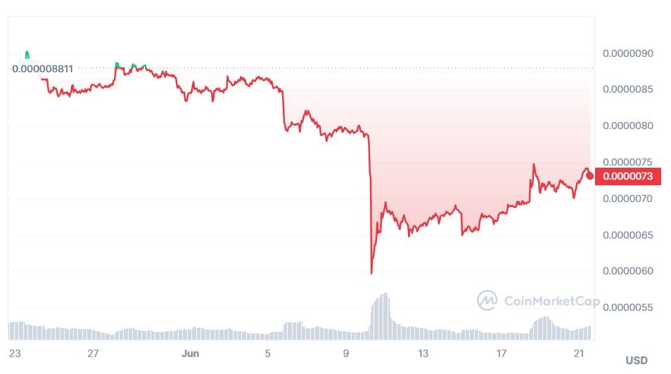 Mieux encore, l’actif aurait même brisé une résistance clé en dépassant enfin le seuil des 0,000007 $, considéré comme sa valeur la plus basse depuis le début de l’année.