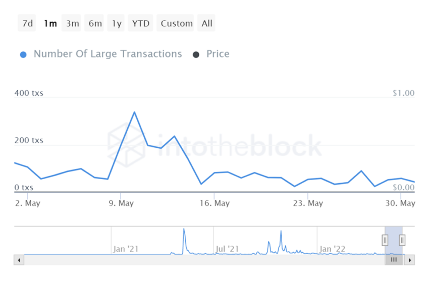En mai, le nombre d’importantes transactions concernant la crypto SHIB a atteint un sommet de 343,71 millions pour un prix de 0,000017 $, ce, le 10 mai.