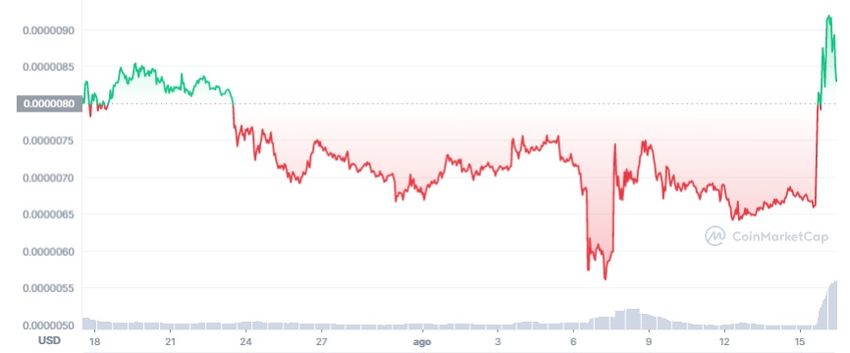 Suite à son ajout sur Coinbase, l’exchange crypto le plus important des États-Unis, le SHIB est monté jusqu’à 0,00000946 dollars, ce qui correspond à son sommet le plus élevé du mois.