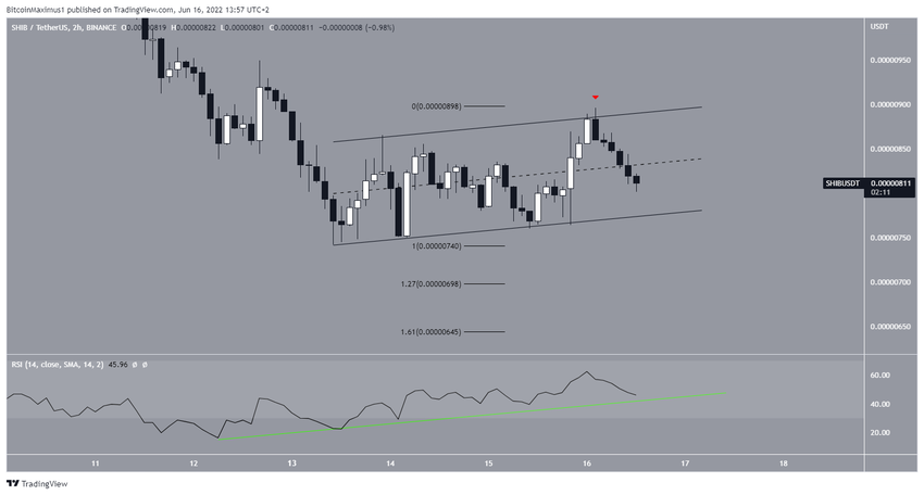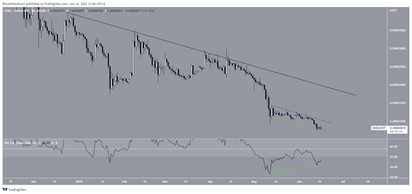 Le graphique sur la journée suggère qu’un rebond de Shiba Inu pourrait se produire d’ici peu. Cela est principalement dû à la considérable divergence haussière (ligne verte) qui s’est développée dans le RSI quotidien.