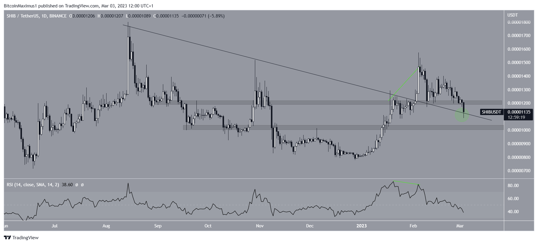 Le 🐕 cours du SHIB évolue à la baisse depuis son sommet à 0,0000157 $ atteint le 4 février. Ce déclin a été précédé d’une divergence baissière au sein du RSI quotidien. Jusque-là, le cours a atteint un creux de 0,0000108 $. Ce faisant, il est également passé sous la zone de support des 0,0000122 $. Celle-ci devrait maintenant opposer une résistance.
