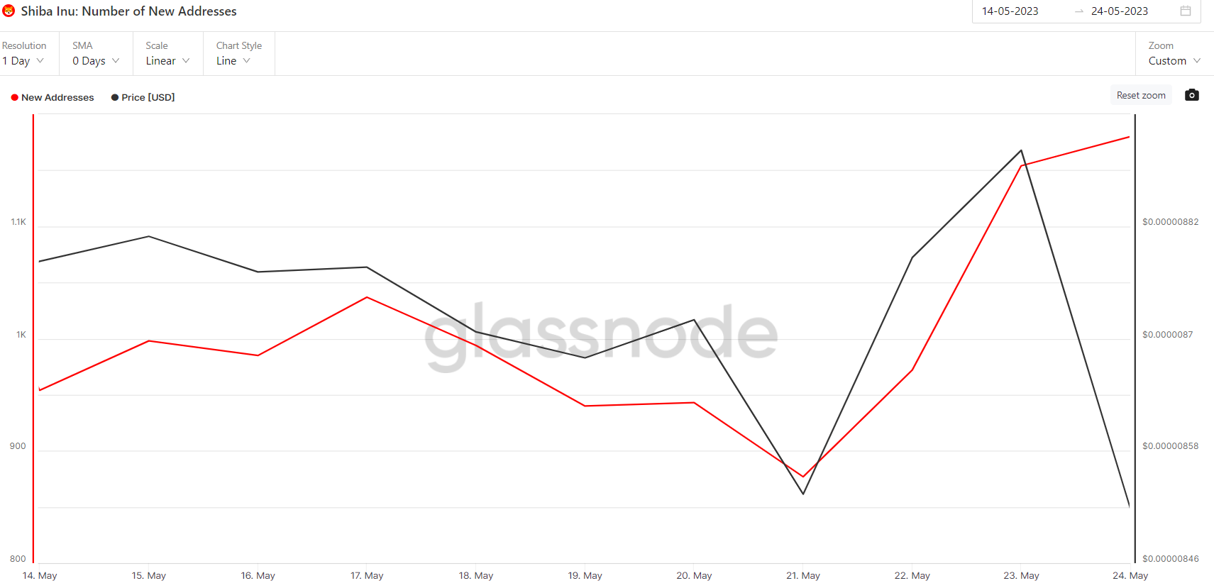 Comme on peut le voir dans le graphique ci-dessus, la croissance du réseau SHIB est en hausse depuis ce lundi 22 mai. Les acteurs haussiers pourraient attribuer cette hausse à l’annonce récente du cold wallet Shiba Inu.