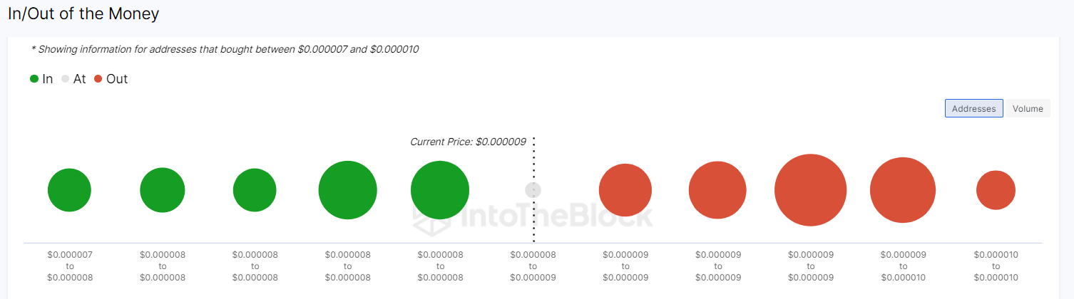 Avec une situation de perte nette de 4 %, les investisseurs en Shiba Inu ne sont peut-être pas disposés à vendre. Ainsi, s’ils arrêtaient effectivement de vendre dans l’espoir de maintenir leurs pertes en dessous de 5 %, ils pourraient déclencher par inadvertance un rebond du prix du SHIB.