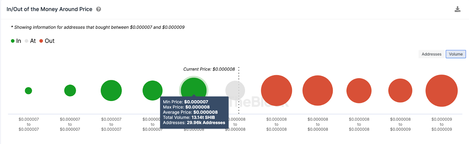 SponsoredComme indiqué ci-dessous, les bears font donc face à une forte résistance autour de la barre des 0,000007 $. Comme on le voit sur le graphique ci-dessous, les 30 000 investisseurs qui ont acheté un total de 13,14 trillions de SHIB au prix minimum de 0,000007 $ pourraient amorcer un rebond du prix.