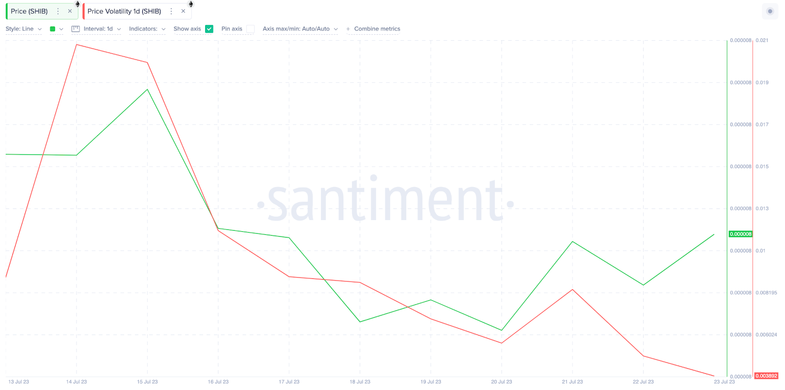 En effet, comme on peut le voir ci-dessous, la volatilité quotidienne du cours du SHIB est passée de 0,02 à 0,004 entre le 14 et le 24 juillet.