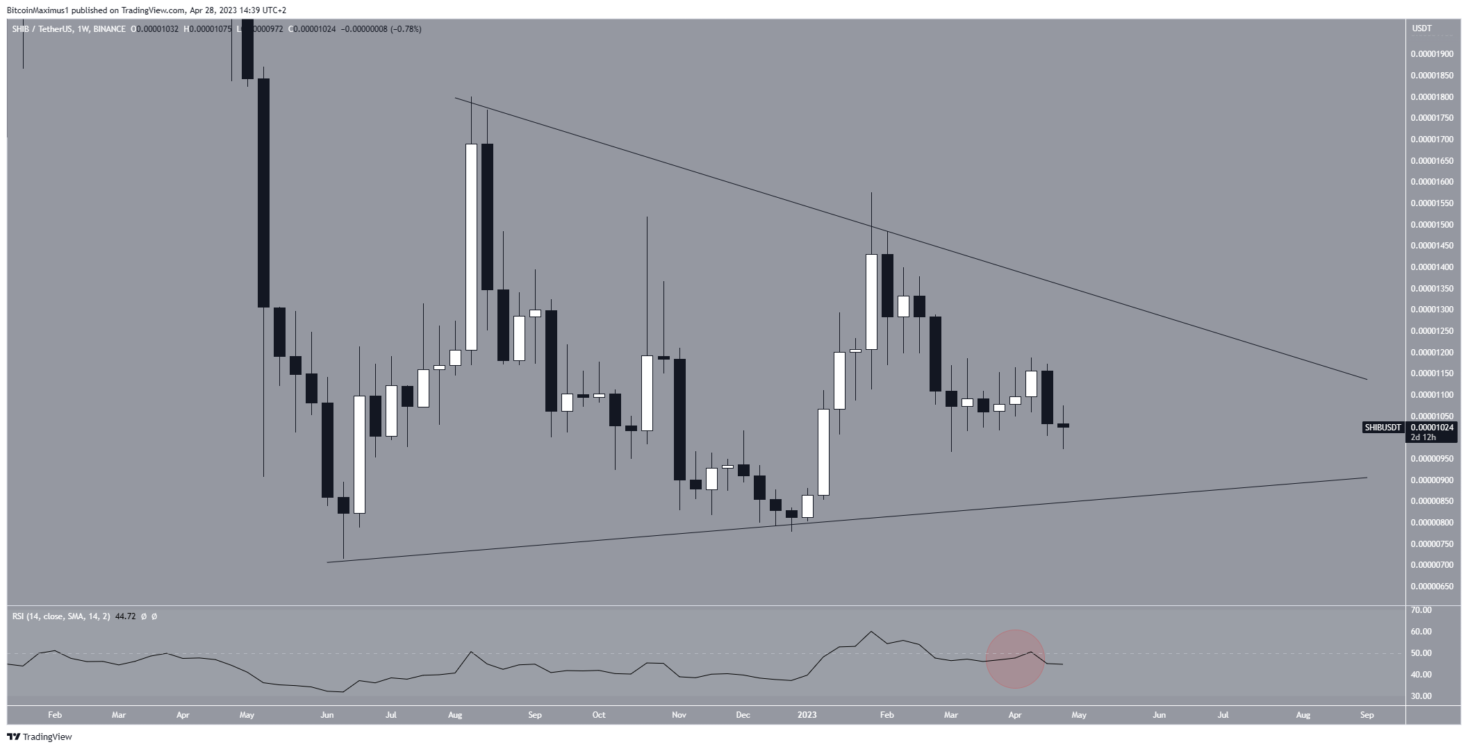 Sur la base des indicateurs précédents, si la baisse de Shiba Inu se poursuit, la ligne de support du triangle se situera à 0,00000850 $.