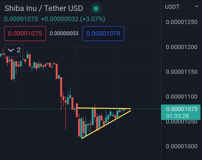 Le détenteur et enthousiaste du SHIB @army_shiba a partagé sur Twitter un graphique du cours, affirmant qu’on y observe une figure de triangle ascendant. Le détenteur pense que le cours pourrait réaliser une percée d’ici peu.