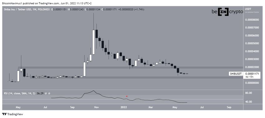 Le cours du SHIB évolue à la baisse depuis son sommet record à 0,000088 $ du 28 octobre. Il a initialement rebondi à la zone horizontale des 0,00002 $ ; il s’agit d’une zone importante, sachant qu’elle a précédemment agi en tant que résistance lors du sommet record de mai 2021.