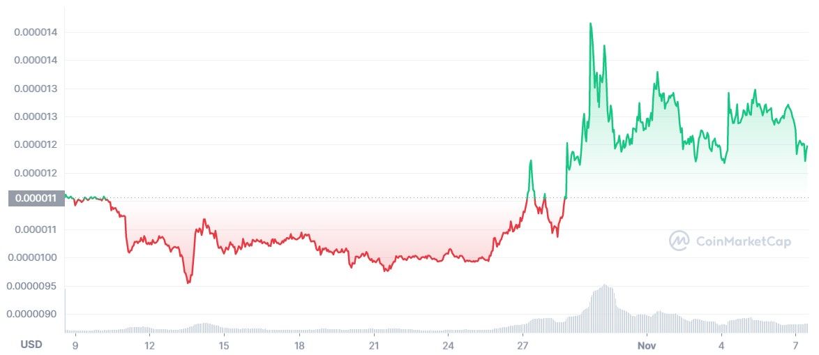 Il n’en a pas fallu davantage pour rendre un coup de boost à la pièce canine. Celle-ci, encore en compétition avec Dogecoin, a vu le mois de novembre devenir très favorable sur son cours. Alors que ce dernier stagnait le mois dernier, les dernières annonces ont permis de faire remonter les graphiques dans le vert.