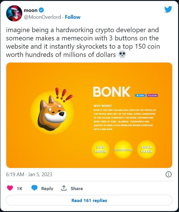 “Les contributeurs de Bonk étaient fatigués des tokenomics toxiques “Alameda” et voulaient créer un memecoin amusant où tout le monde a une chance équitable.”