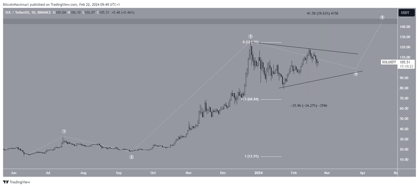 Cependant, bien que le cours SOL ait clôturé au-dessus d’un niveau de résistance de Fibonacci (Fib) du retracement de long terme de 100 $, il n’a pas encore atteint son sommet de 2023 situé à 126 $. Au contraire, il a créé un sommet légèrement inférieur.