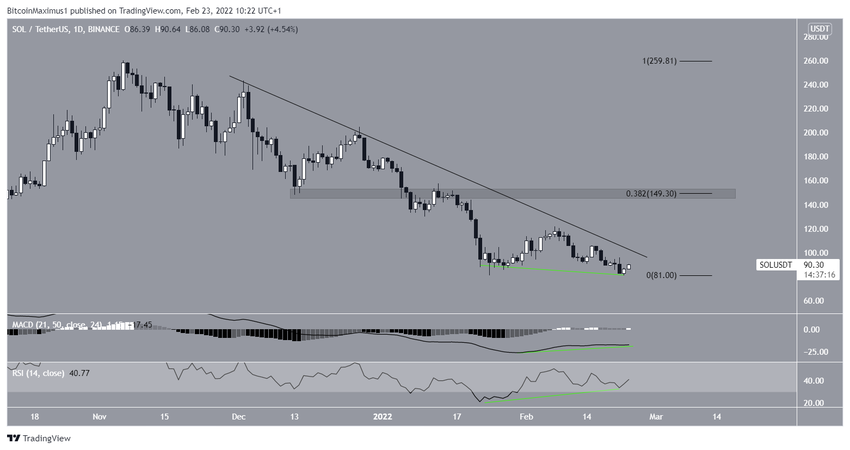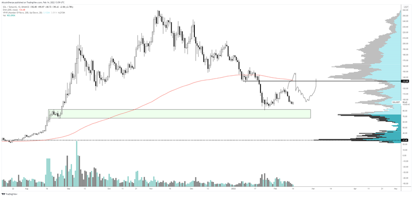 Le cours de Solana évoluait à la baisse depuis son sommet record de 259,90 $ atteint le 6 novembre 2021. Jusque-là, le mouvement de déclin a mené à un creux local de 81 $, ce le 22 février. Depuis le sommet record du cours, cela correspond à une baisse de 69%.