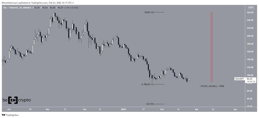 SponsoredCe creux du cours du token SOL est très proche du support du retracement de Fibonacci 0,786, situé à 76 $. Il s’agit de la dernière zone de support avant le niveau du plancher d’août 2021.
