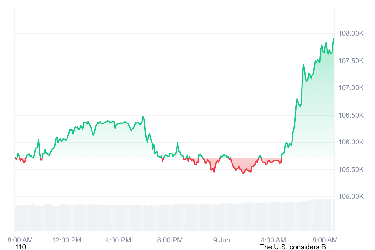 Après tout, le cours du Bitcoin a profité du week-end et de ce lundi pour se revaloriser. En hausse de plus de 2 % aujourd’hui, il se rapproche progressivement des 110 000 $ et pourquoi pas, d’un nouvel ATH… Au moment de la rédaction, l’actif se négocie à 107 900 $.