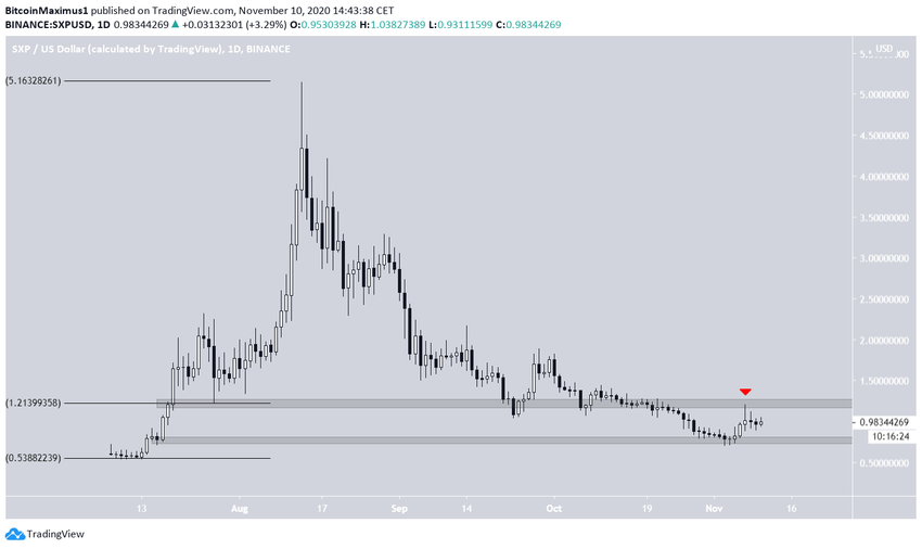 Le cours du SXP était en déclin depuis son sommet à 5,15$ du 13 août. Le 3 novembre, il a atteint un creux à 0,69$ et a retourné sa tendance peu après. Depuis, il s’est accru de plus de 30%.