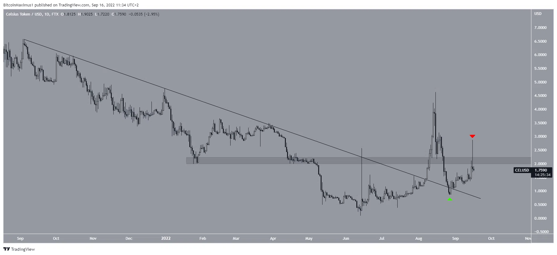 Le 6 août, le token CEL a dépassé une ligne de résistance descendante en place depuis septembre. Il a alors atteint un sommet de 4,63 $ avant de décliner.