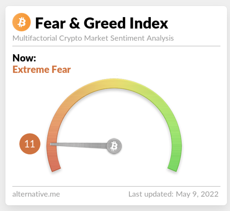 Récemment, le marché des cryptomonnaies a été englouti dans une marée rouge dévastatrice alors que le prix de l’actif n°1 du secteur a fortement chuté, menaçant de passer sous la barre des 30 000 $. Au 9 mai, le prix de Bitcoin s’est situé temporairement au-dessous des 30 000 dollars tandis que l’indicateur de Fear and Greed (peur et avidité) affichait une peur extrême.