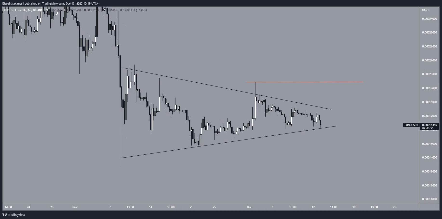 Une hausse au-dessus du sommet du 30 novembre (ligne rouge) de 0,00019 $ annulerait cette projection baissière de Luna Classic.