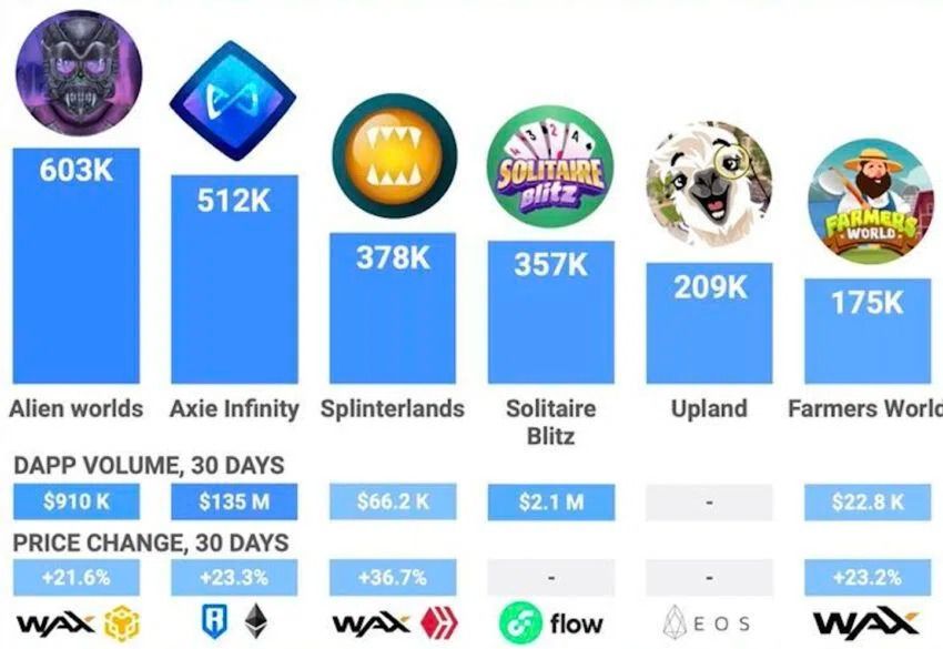 À en croire les dernières données, Alien Worlds reste en tête de liste, mais les prix des tokens des jeux blockchain qui le suivent ont fortement augmenté.