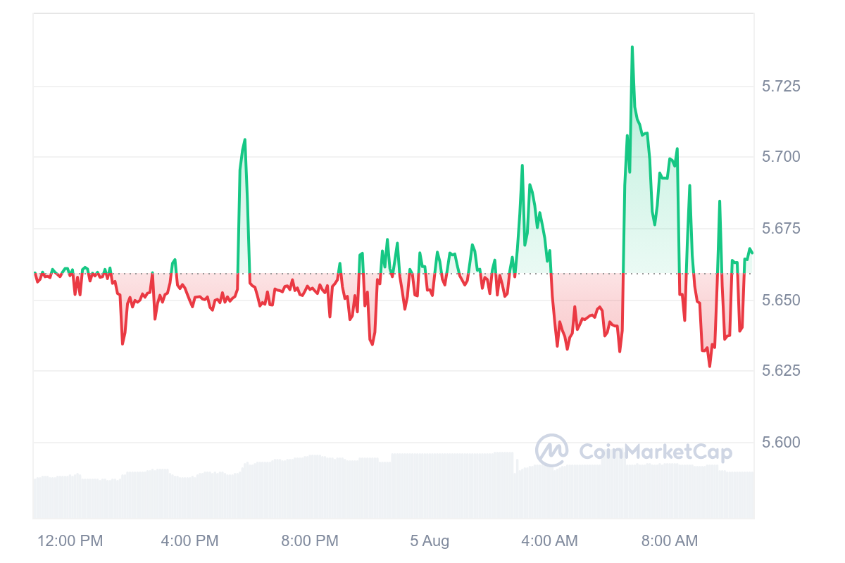 La performance n’a rien d’exceptionnelle, mais on n’en voudra pas au LEO étant donné le carnage de ce top & flop crypto. Au final, l’altcoin aura gagné 0,10 % et reste stable à un prix d’échange de 5,66 $.