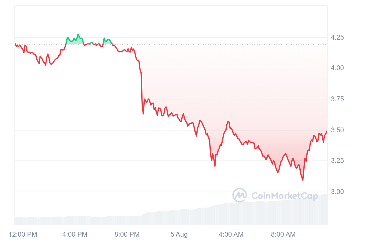 L’addition est plus que salée sur un des altcoins prometteurs du marché crypto. Le NEAR est en pleine déroute aujourd’hui et retrace de 16,87 %. Désormais, l’actif s’échange pour la modique somme de 3,47 $.