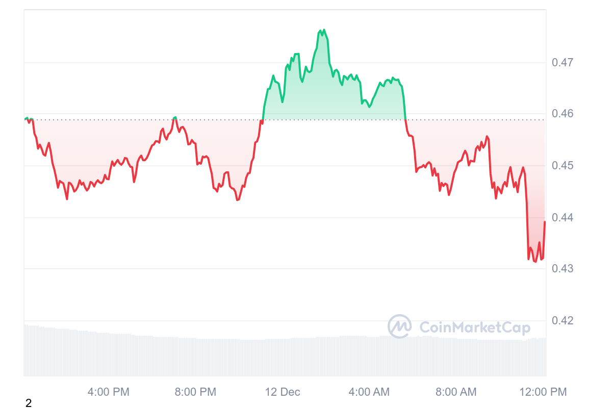 Le cours d’ALGO est presque dans la lignée de Mantra mais sans ATH à la clé. Le cours perd 4 % de sa valeur et l’actif reste en attente de dépasser les 50 centimes à un prix de 0,44 $.