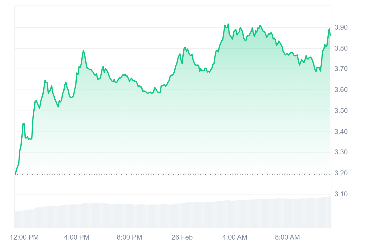 La journée aura été satisfaisante pour Celestia et sa pièce native, le TIA. Ce dernier croît de 19,44 % en une journée et s’échange désormais à 3,86 $.