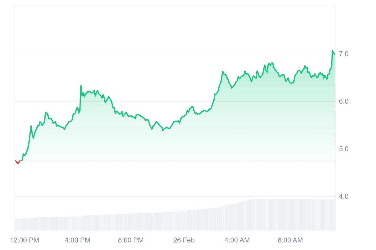 Sur les dernières 24h, la revalorisation est intense pour IP, puisqu’il gagne près de 50 % en une seule journée ! Désormais, la pièce se négocie aux alentours de son ATH, à 7,08 $. Un record pourrait encore une fois avoir lieu aujourd’hui.