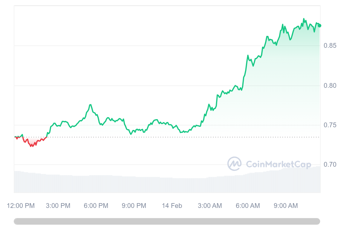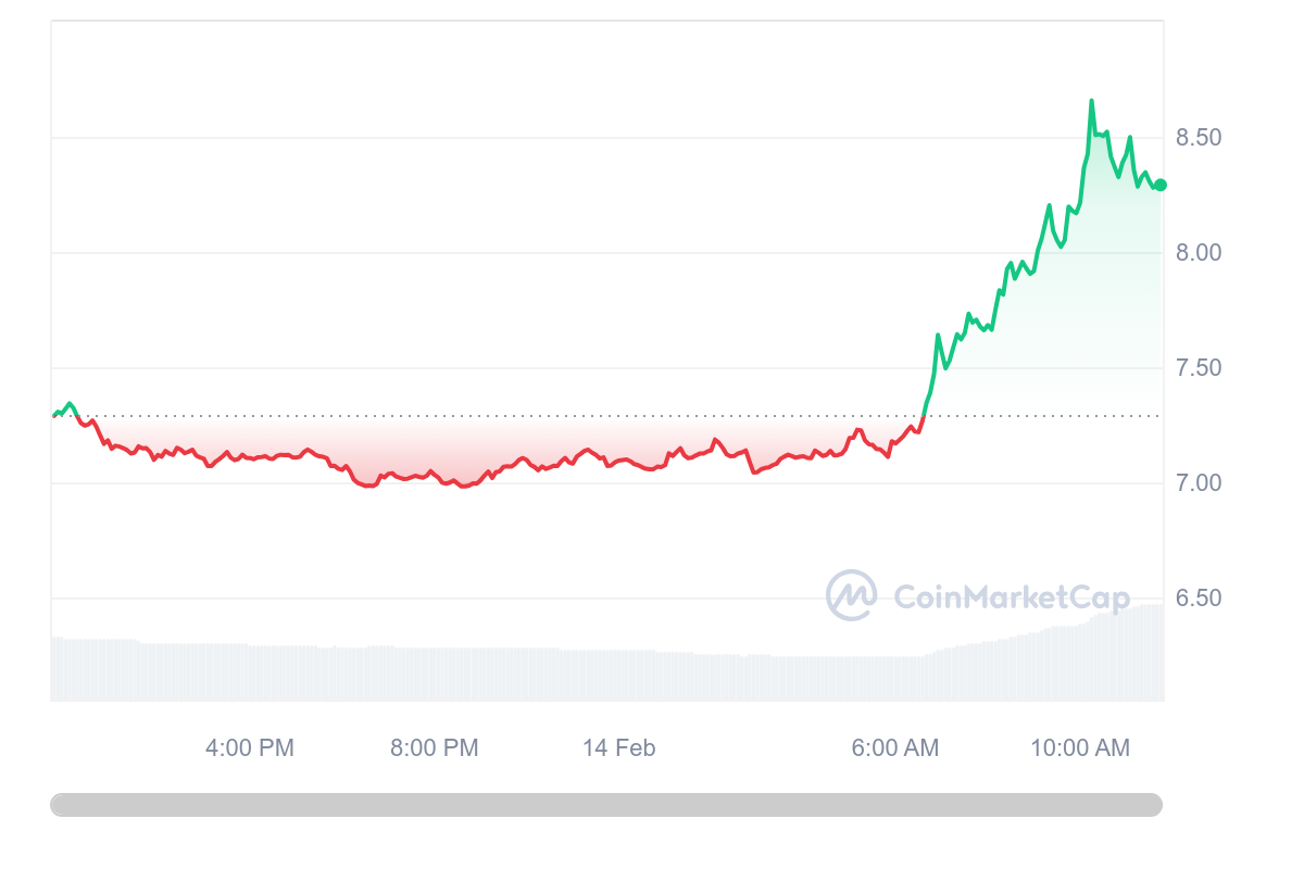 Le cours du DYM, jeton de Dymension, a ainsi gagné 13,86 % pendant la nuit. Au moment même de rédaction, le jeton s’échange à 8,29 $ après un sommet de 8,66 $, rien que ça !