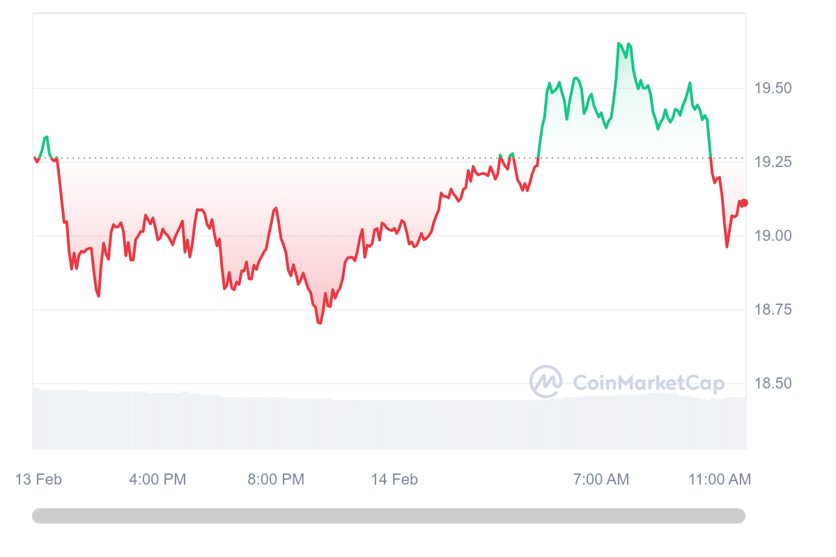 SponsoredLe cours TIA, plutôt performant ces derniers jours est arrivé à se maintenir mais sans prolonger la hausse. Malgré tout, la pièce a connu pas mal de volatilité dans la journée avec un prix qui a navigué une fois de plus proche des 20 $. Avec une baisse de 0,78 %, le jeton de Celestia vaut maintenant 19,11 $.