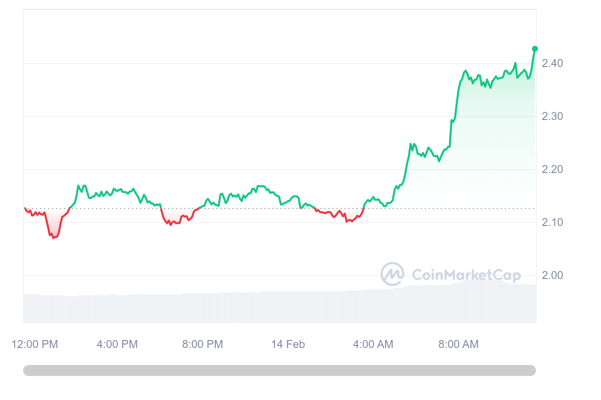 Avec des évolutions aussi positives qu’aujourd’hui, le Stacks pourrait ne pas tarder très longtemps. En effet, car le jeton vient de gagner 15,79 % et s’échange maintenant à 2,46 $.