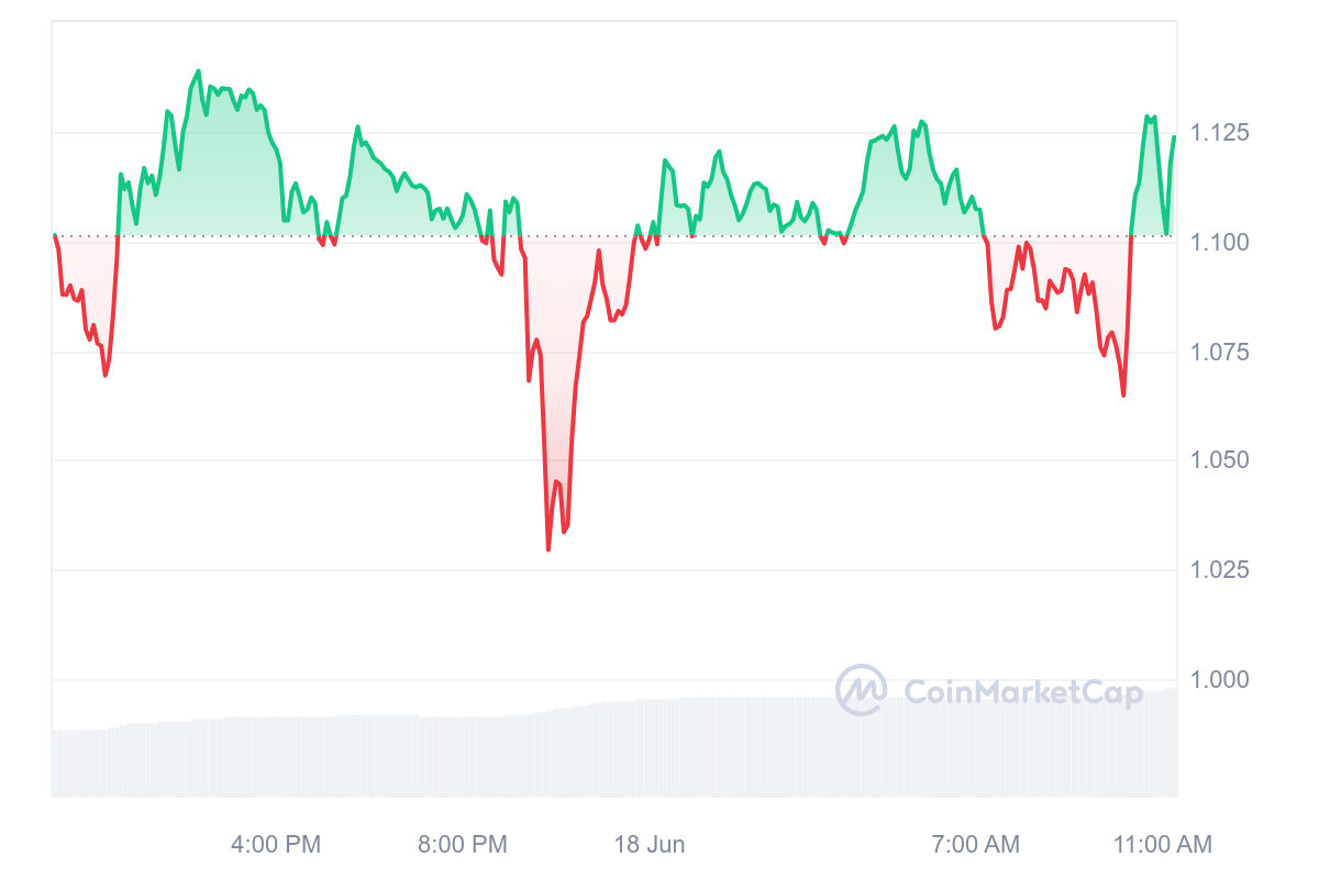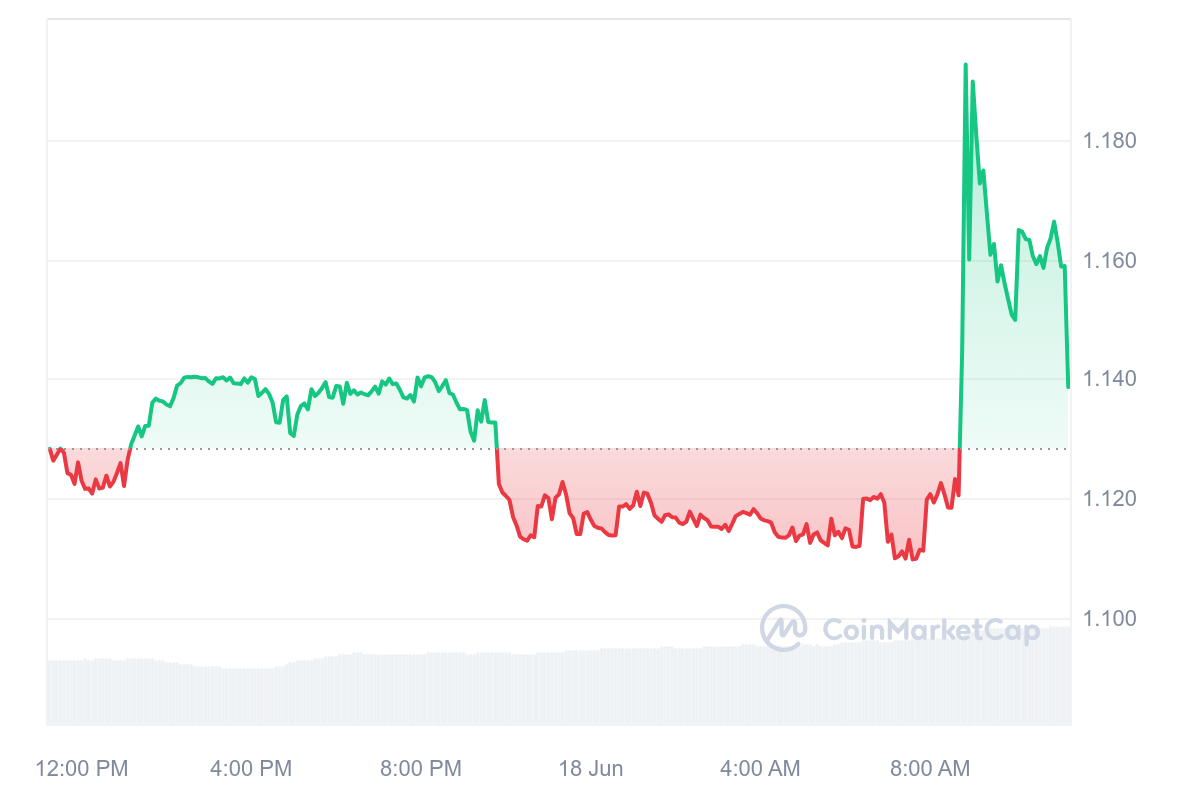 Le cours du BGB a failli aller plus haut, mais il est retombé à la dernière minute à 1,14 $. Malgré tout, le jeton est en hausse et c’est sans doute l’essentiel pour aujourd’hui.