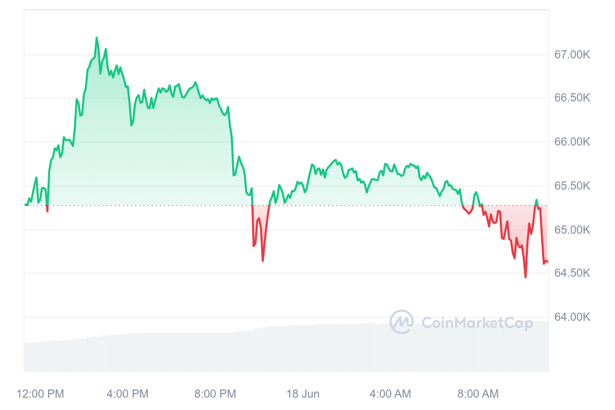 Au moment de rédaction, l’actif est malgré tout en baisse de 1,11 % et cela fait chuter le Bitcoin sous les 65 000 $. Une bien mauvaise nouvelle.