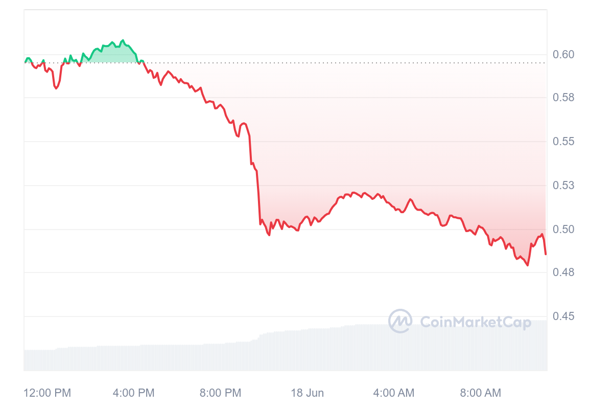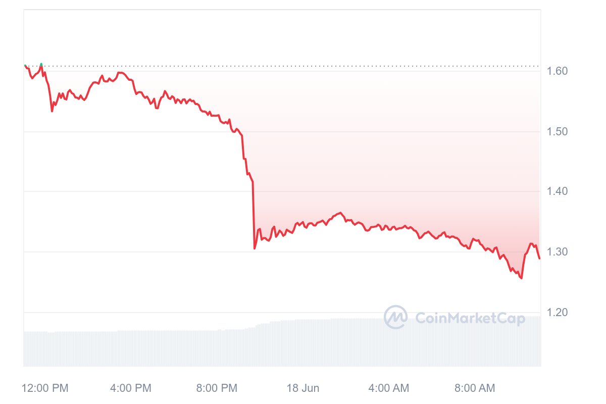 SponsoredPremière victime du jour, la cryptomonnaie Core a perdu plus de 20 % à la journée. Au moment de rédaction, le jeton est valorisé à 1,29 %.