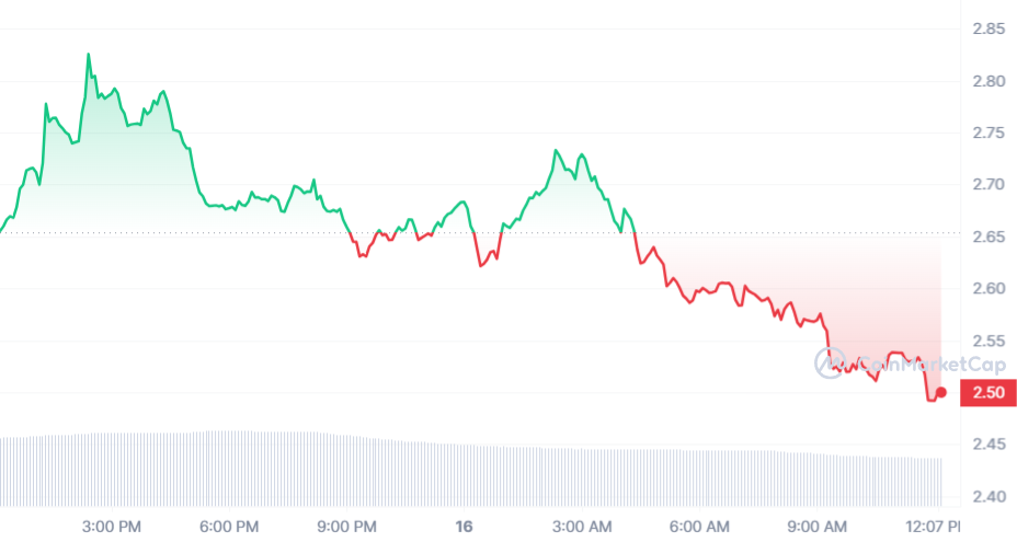 Le cours CAKE est malheureusement dans le rouge et n’a pas réussi à conserver l’intégralité de ses gains les plus récents. Après cette baisse journalière de 5,89 %, le jeton baisse jusqu’au 2,50 $.